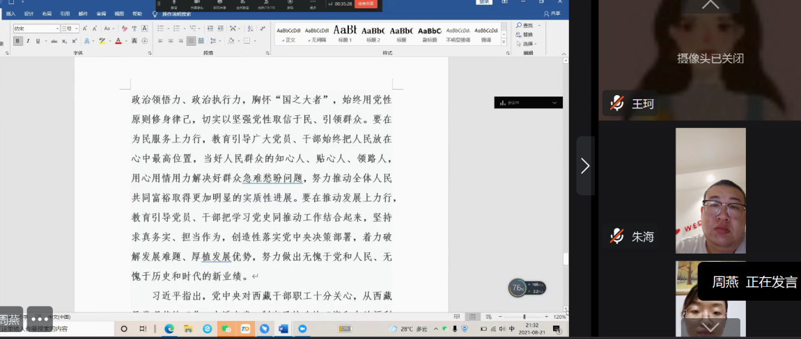 2021年8月27日,必赢76net线路官网党总支在钉钉召开了学习会,学习了习近平总书记在西藏自治区考察期间发表重要讲话精神。会议由必赢76net线路官网党总支书记周燕主持,全体党员参加。