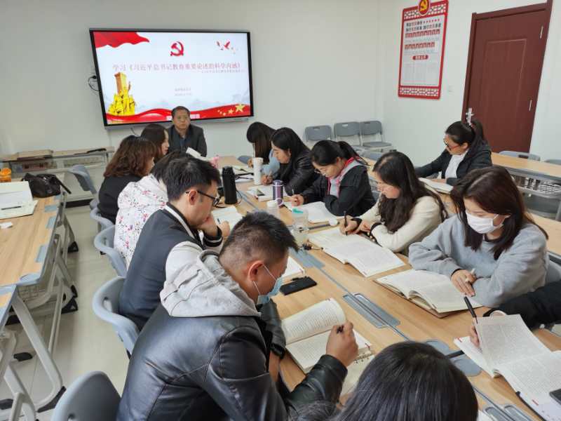 2020年11月3日,必赢76net线路官网全体教师在办公楼504会议室,集中学习了《习近平总书记教育重要论述讲义》有关内容。