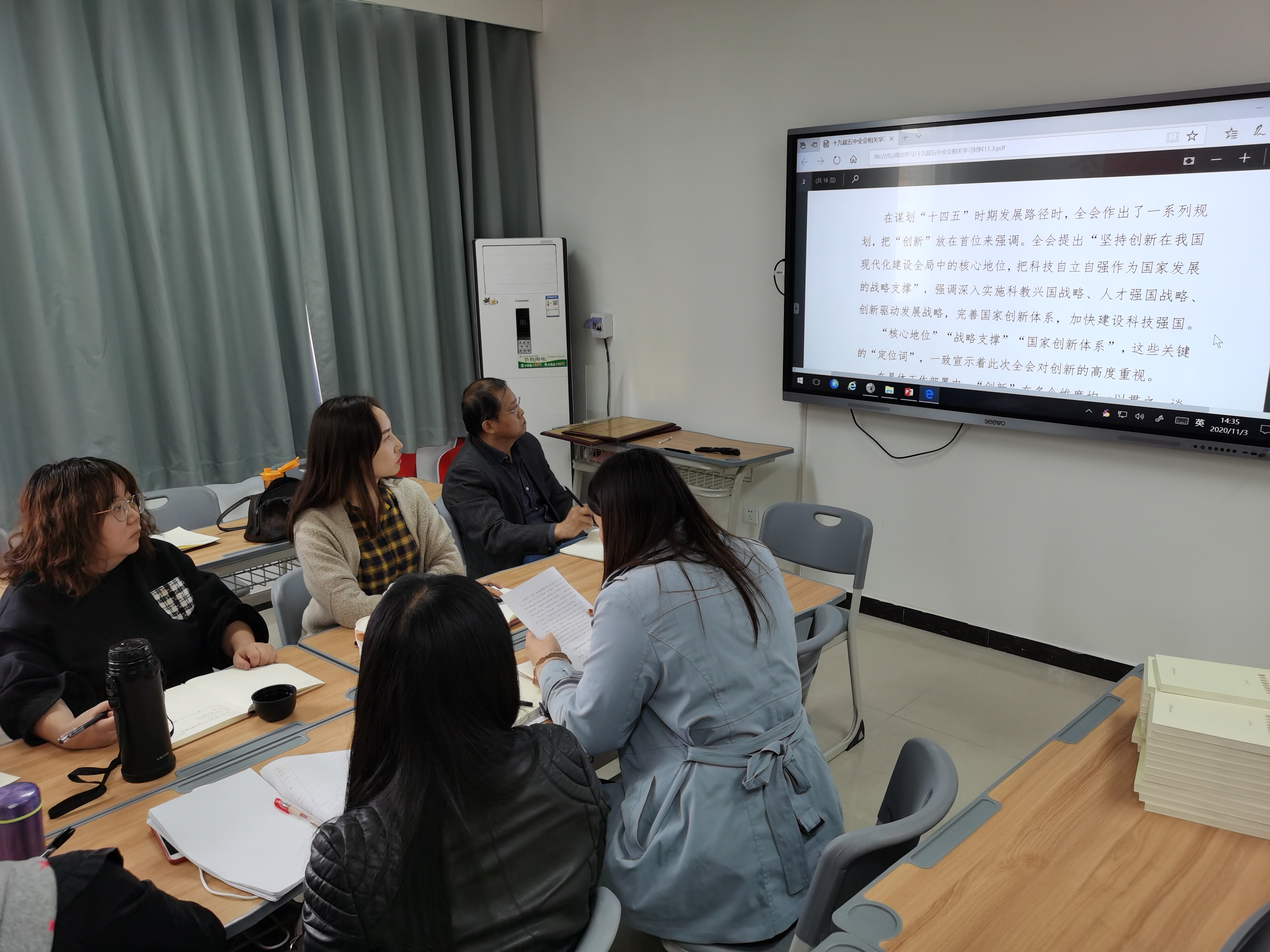 11月3日,必赢76net线路官网在办公楼504举行全体教师政治理论学习会议。集中观看了央视网视频《中国共产党第十九届中央委员会第五次全体会议公报》,学习了中共十九届五中全会公报及相关精神解读。