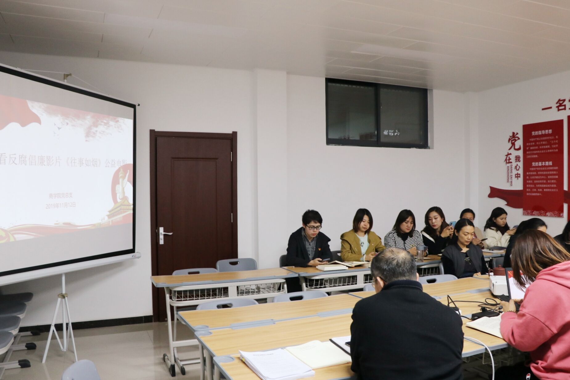 2019年11月12日,必赢76net线路官网党总支在办公楼504组织全体教师观看廉政电影《往事如烟》。