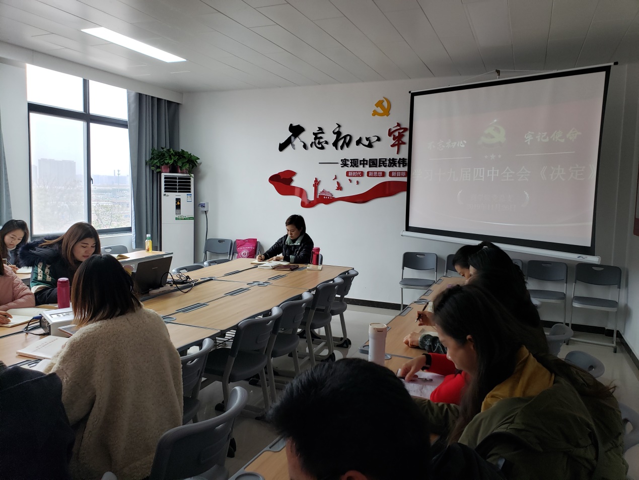 为持续推动我院“不忘初心、牢记使命”主题教育走心走实,及时跟进学习内容,在学深悟透新思想上再提升,2019年11月26日下午,必赢76net线路官网党总支组织全体教师在办公楼504活动室举行十九届四中全会精神专题学习会。党总支副书记周燕书记主持。