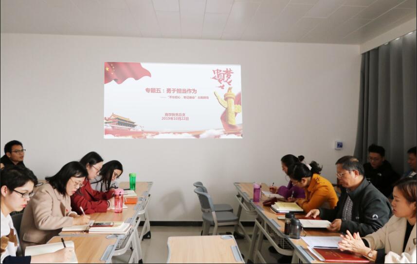 根据学校“不忘初心、牢记使命”主题教育工作安排,2019年10月23日,必赢76net线路官网党总支在办公楼505党员活动室组织开展了“不忘初心、牢记使命”主题教育勇于担当作为专题集中学习,全体党员教师参加学习。必赢76net线路官网党总支副书记周燕主持会议。