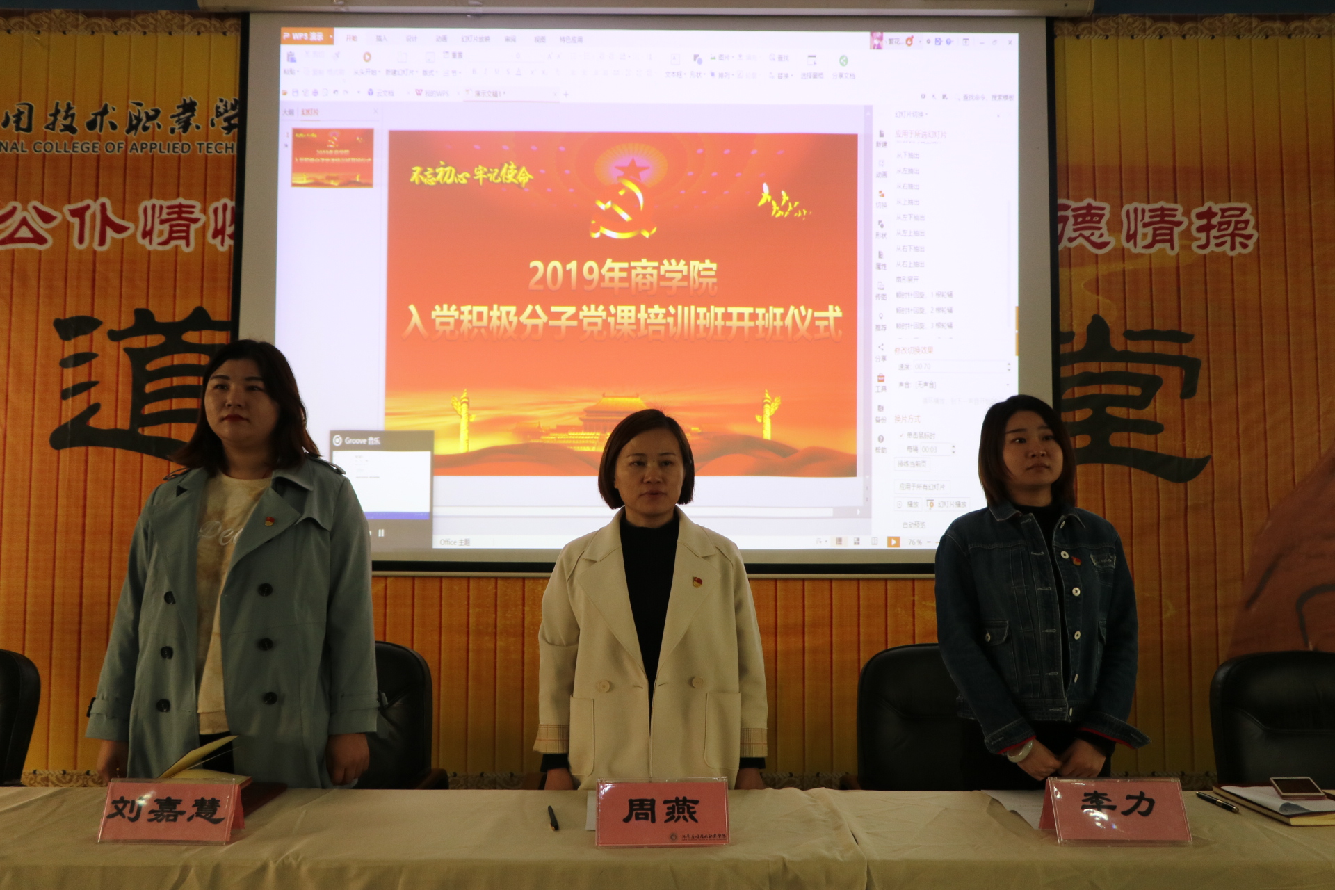 2019年10月29日下午,2019年必赢76net线路官网分党校第二期入党积极分子培训班在二号教学楼学术报告厅举行开班仪式,必赢76net线路官网党总支副书记周燕老师出席开班仪式并进行发言,必赢76net线路官网党总支宣传委员刘嘉慧老师出席活动,必赢76net线路官网全体入党入党积极分子参加本次开班仪式。会议由必赢76net线路官网党总支组织委员李力老师主持。