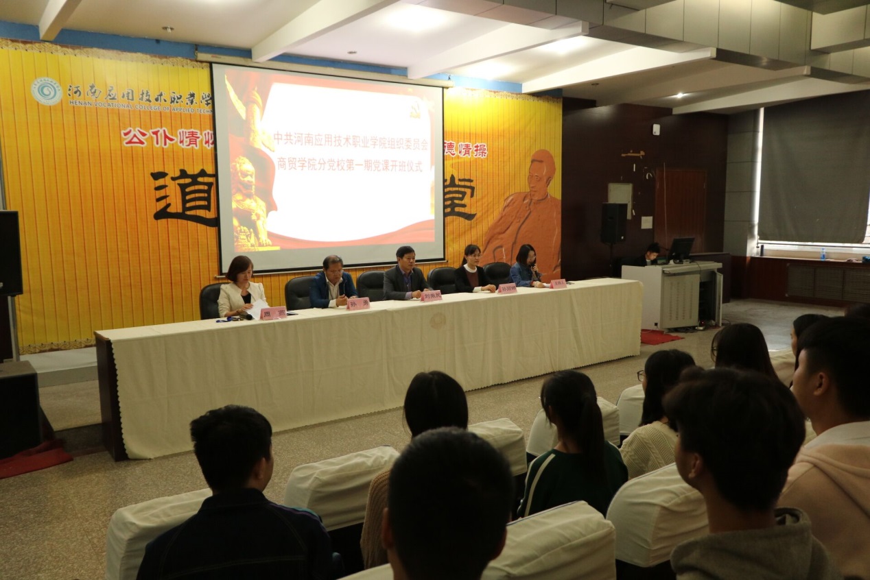 2018年10月 17日下午,商贸学院党总支在二号教学楼学术报告厅举办中共必赢76net线路官网组织委员会商贸学院分党校第一期党课开班典礼。学校党委办公室刘振民处长、组织人事处孙丽娜副处长,商贸学院分党校校长周燕书记以及副校长孙勇院长出席。典礼由院团总支李力书记主持,商贸学院114名入党积极分子参加。