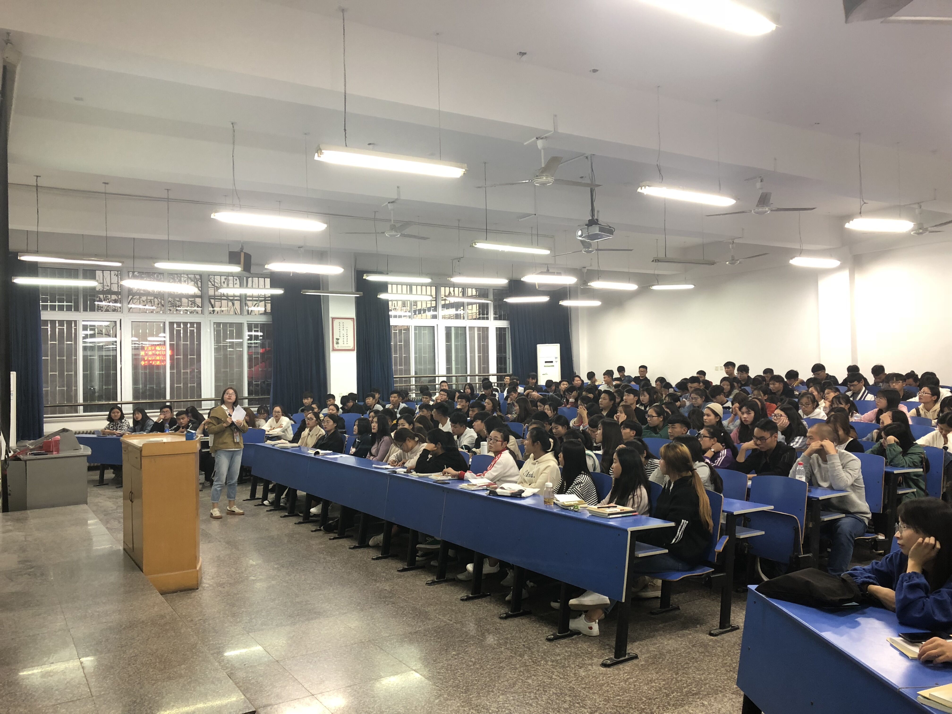 10月29号下午,必赢76net线路官网商贸学院开展了2018级学院新生“培育社会主义核心价值观,助力梦想扬帆起航”主题讲座。讲座由两部分组成,李力老师主讲入党的基本知识主题,徐小洁老师主讲培育和践行社会主义核心价值观主题。商贸学院18级全体同学参加讲座。