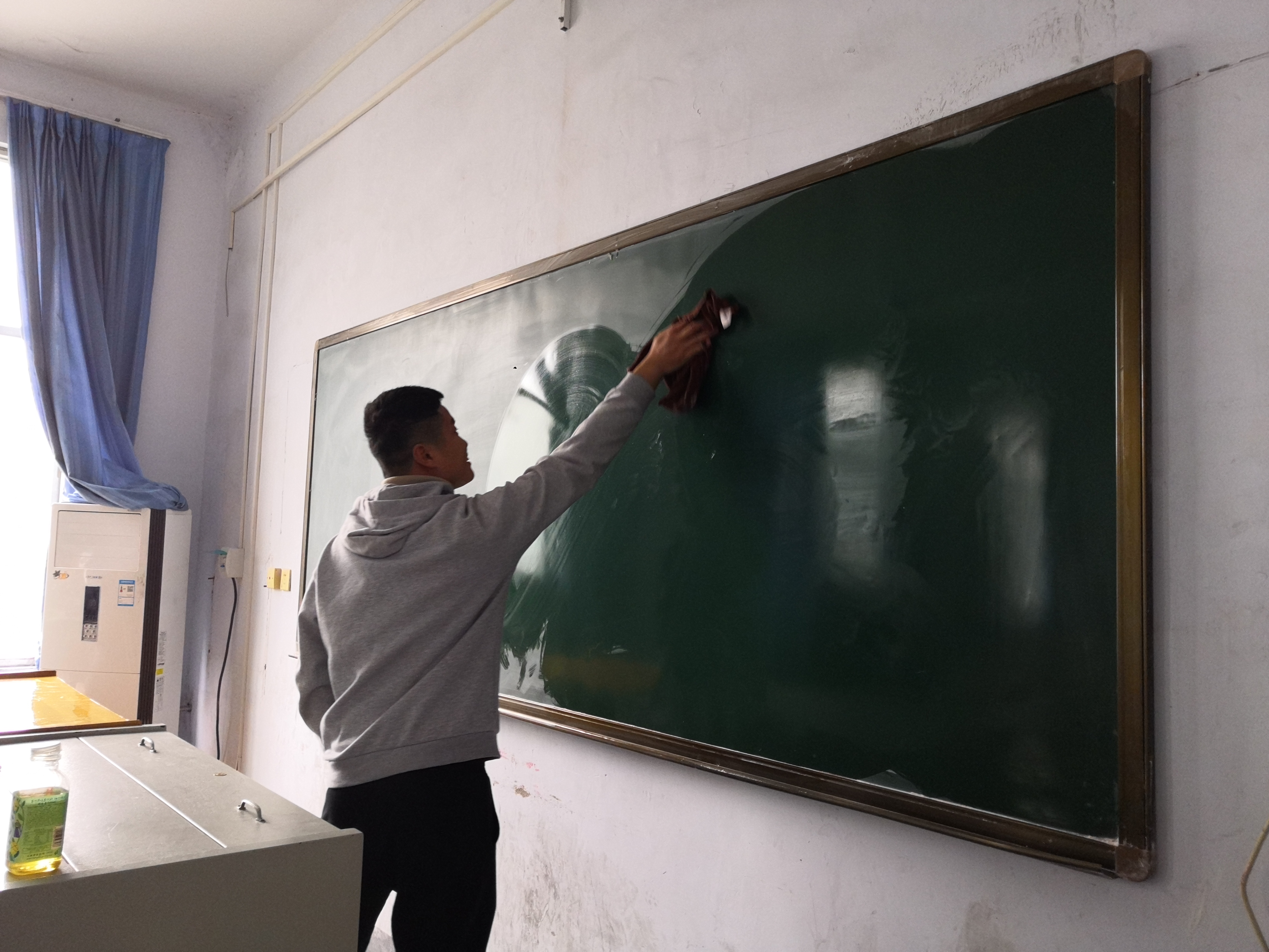 同学们自带工具,在活动开展前做了充分的准备工作,活动中人员明确分工,对教室内一些被忽视的卫生死角,如空调后面、抽屉里面,以及讲桌下面、桌面的一些乱写乱画,黑板上的灰尘等进行清扫,清理教室积存垃圾同时对教室桌椅进行了摆放整理。在活动中每一位入党积极分子认真负责,不怕脏、不怕累,充分发挥了模范带头作用,为同学们树立了榜样。本次志愿活动加强了同学们的合作意识,也是入党积极分子责任感和奉献精神的具体体现。保护校园环境,从身边做起,从小事做起,从自己做起,美化身边的环境同时也是美化了自我的心灵,为了大家拥有更加优美的校园学习和生活环境,我们向全体学生提出倡议: