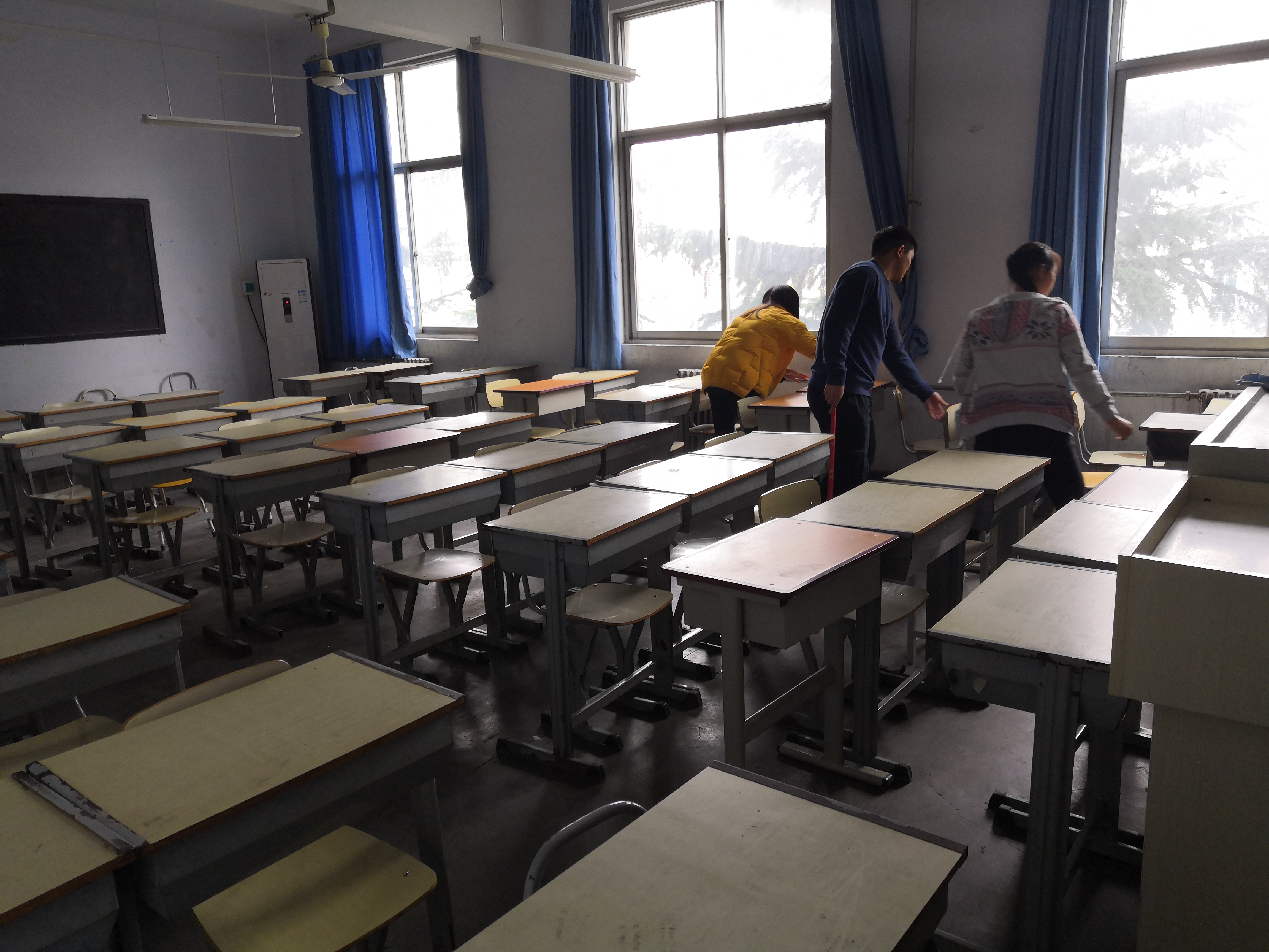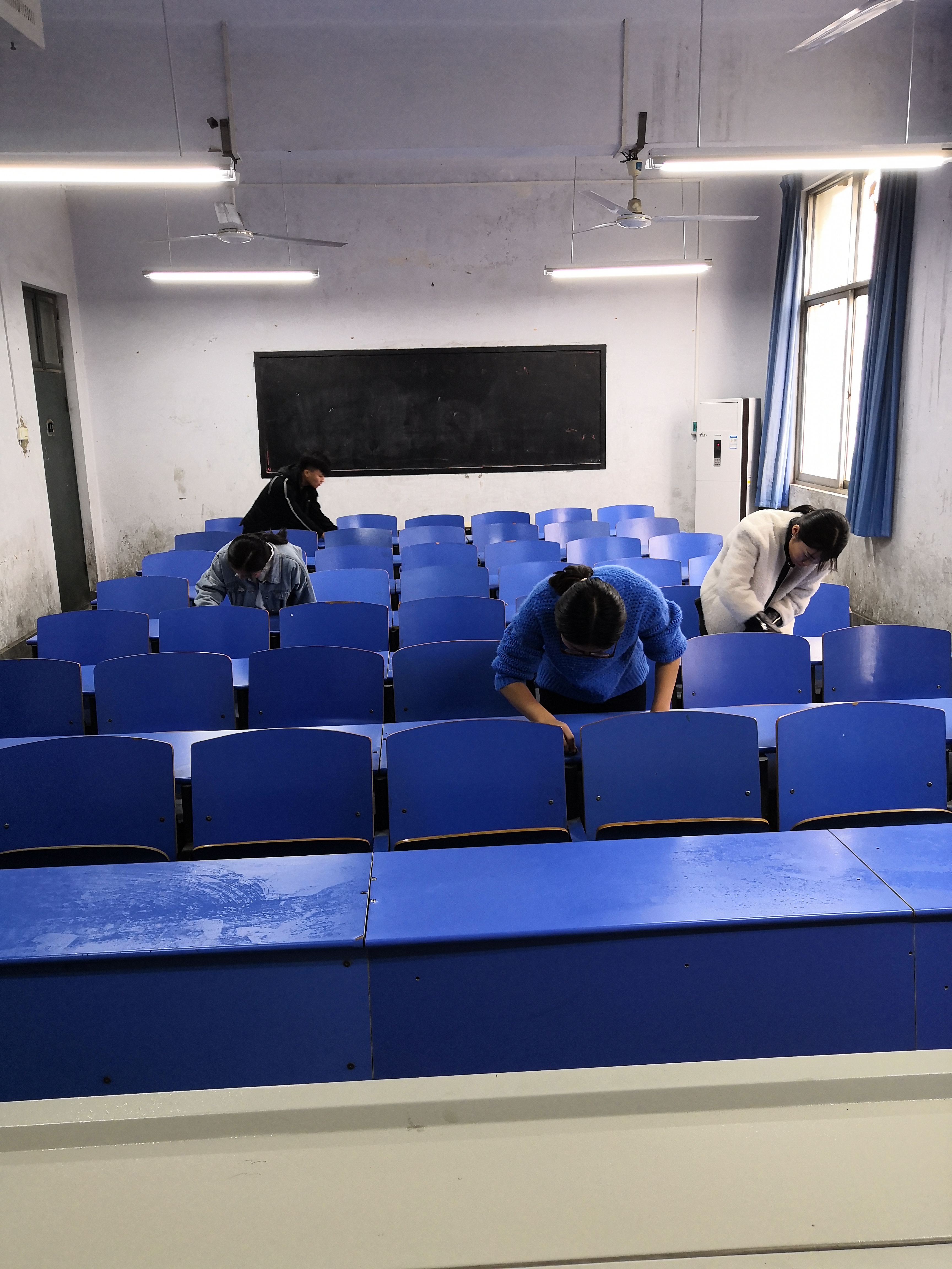 为了创建美好校园,营造良好学习环境,2018年11月20日下午商贸学院组织四十多名入党积极分子在学校A楼4楼开展志愿服务活动,对教室内乱摆乱放、乱涂乱放、乱张贴等不文明现象进行清洁和整理。