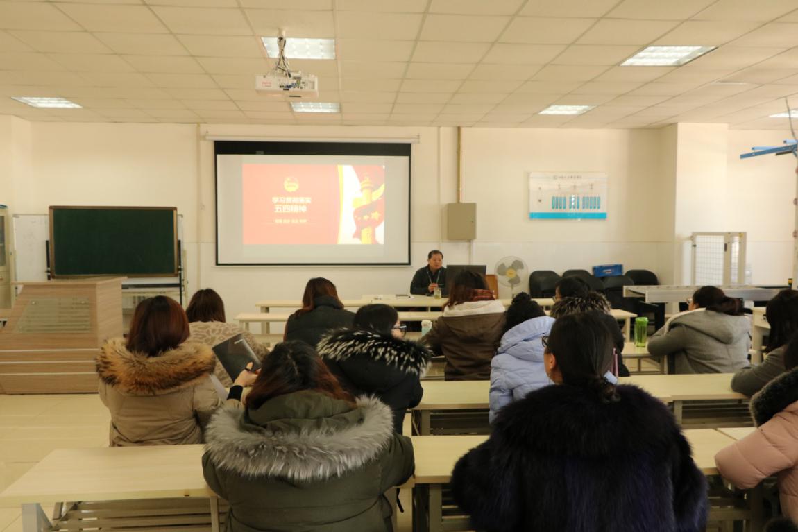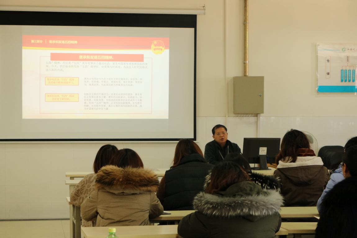 孙勇院长首先从国内外政治和文化角度阐述了"五四运动"爆发的历史背景,用大量丰富生动的历史图片讲述了五四运动的发展过程,他强调爱国主义是五四精神的源泉,民主与科学是五四精神的核心。并告诫广大教育工作者,要时刻牢记教育是国之大计,每一个教育工作者身上都担负着民族振兴的重要使命和职责。