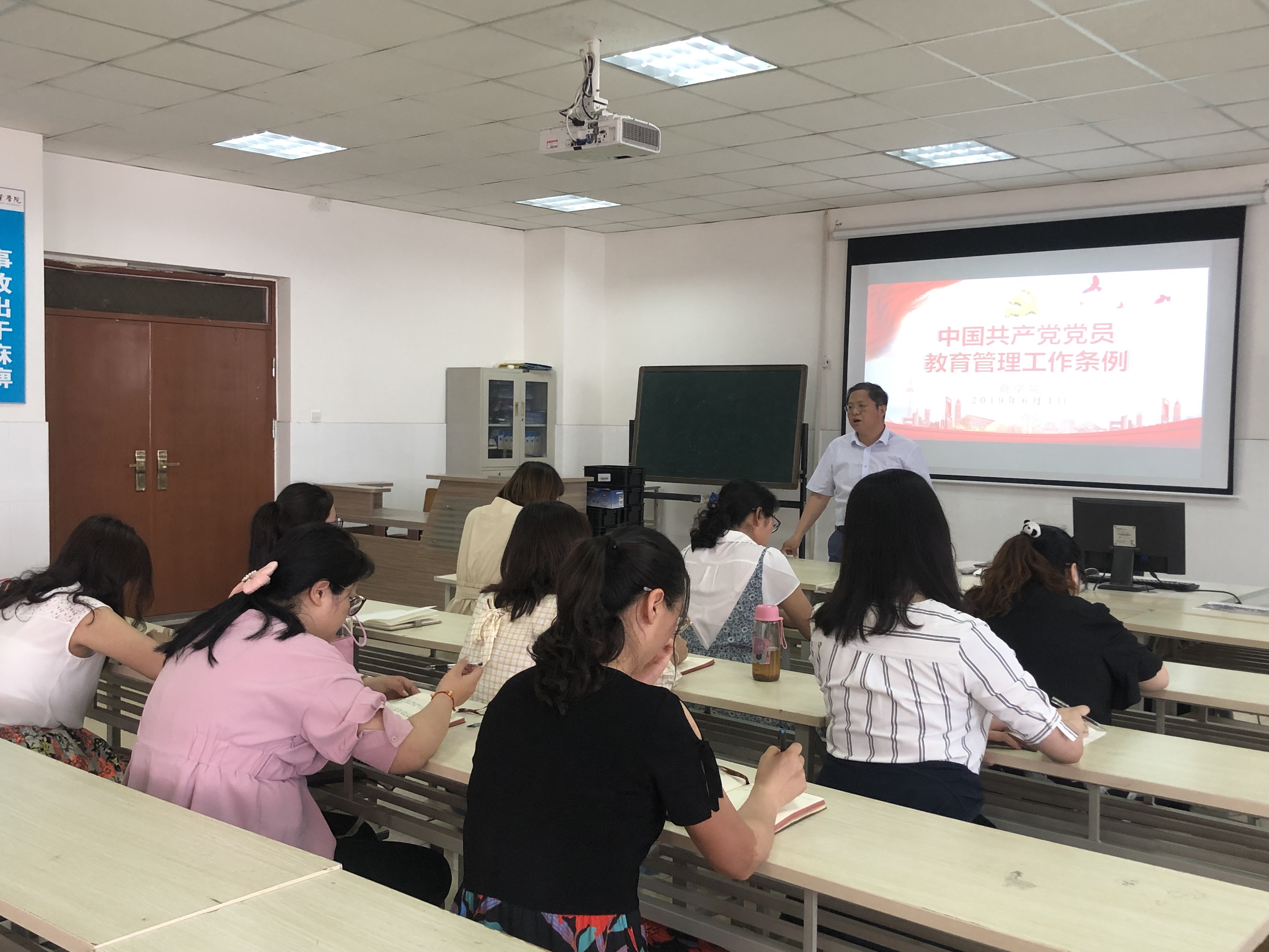 2019年6月4日下午,必赢76net线路官网在实训室E609教室组织党员同志学习《中国共产党党员教育管理工作条例》。必赢76net线路官网党总支书记、院长孙勇领学并主持学习会议。