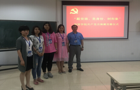 为加强基层党组织建设,充分发挥党员教师的先锋模范作用,引导和带动广大教师自觉投身“两学一做”学习教育,展示教师党员良好的精神风貌,2016年5月18日晚上教研活动时间,商贸学院党总支举行“戴党徽、亮身份、树形象党员教育活动暨共产党员佩戴党员徽章仪式。商贸学院全体党员参加仪式。