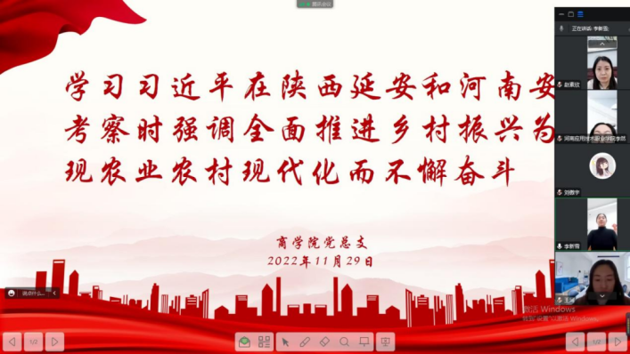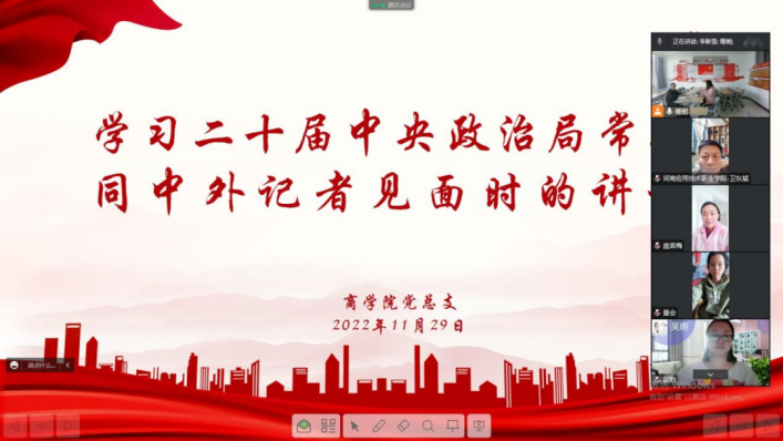 2022年11月29日下午,必赢76net线路官网组织全体教师进行政治理论学习,本次集中学习通过线上线下相结合的方式进行,由必赢76net线路官网党总支书记苏云峰主持,党总支宣传委员刘嘉慧领学。