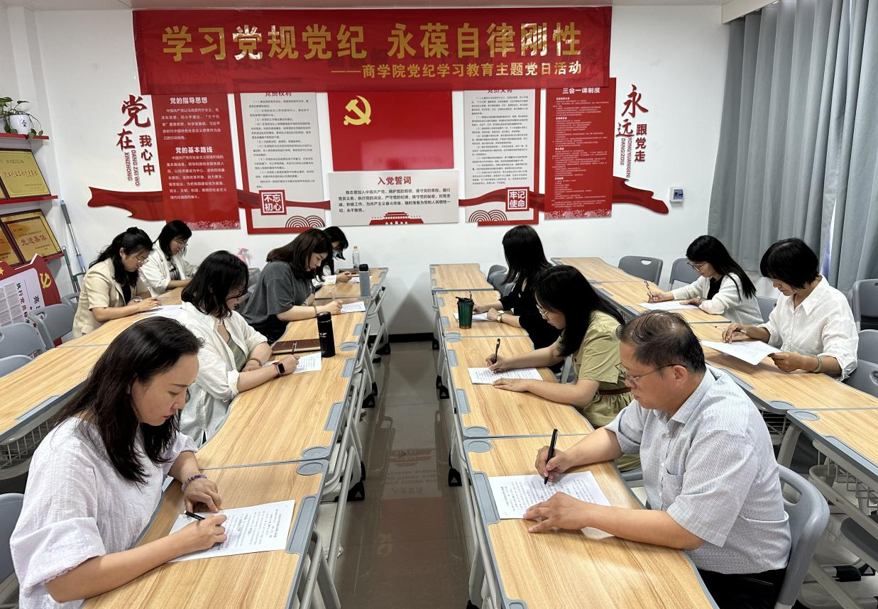 为进一步营造浓厚的党纪学习氛围,推进党纪学习教育入脑入心,走深走实,达到以考促学、以知促行、深化学习的目的。5月28日下午,必赢76net线路官网党总支在郑州、开封两校区开展“学习党规党纪 永葆自律刚性”主题党日活动。本次党日活动以党纪学习教育知识测试的形式开展,学校党委委员、副校长魏新华亲临活动现场指导工作,必赢76net线路官网全体党员教师参与。