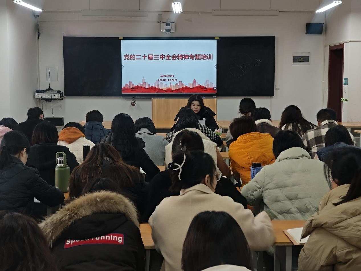 11月26日,必赢76net线路官网党总支于开封校区北院教学楼E203组织召开党的二十届三中全会精神专题培训。会议由必赢76net线路官网党总支宣传委员刘嘉慧主持,学院全体党员教师参加。