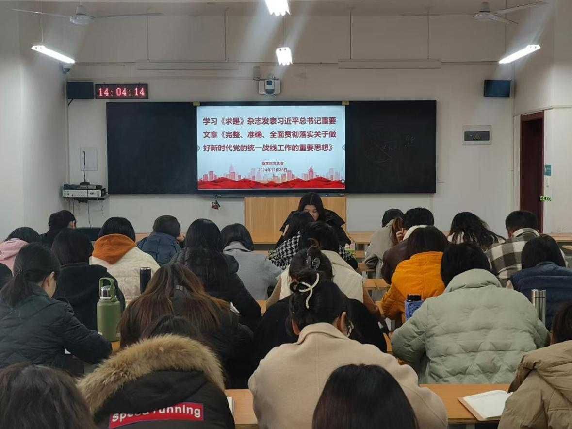会上,刘嘉慧带领全体教师学习了《求是》杂志上发表的习近平总书记重要文章《完整、准确、全面贯彻落实关于做好新时代党的统一战线工作的重要思想》。文章强调,统一战线是党的总路线总政策的重要组成部分,在我国革命、建设、改革不同历史时期发挥了重要作用。党的十八大以来,党统筹中华民族伟大复兴战略全局和世界百年未有之大变局,从治国理政的战略高度对统战工作作出全面部署,推动统战工作取得历史性成就,统一战线呈现出团结、奋进、开拓、活跃的良好局面。