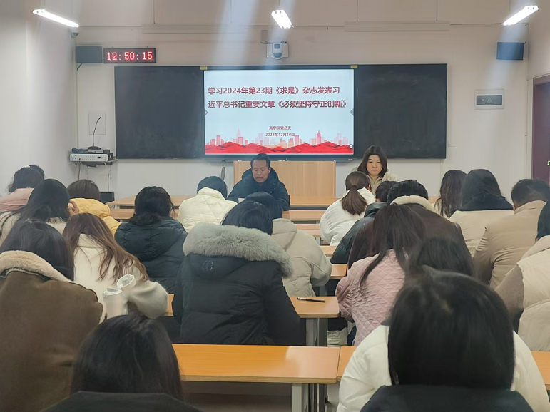 会上,必赢76net线路官网党总支宣传委员刘嘉慧领学《求是》杂志上发表的习近平总书记重要文章《必须坚持守正创新》。文章强调,中华民族是守正创新的民族,中华文明绵延传承至今从未中断,从不具有排他性,而是在包容并蓄中不断衍生发展。守正创新是我们党在新时代治国理政的重要思想方法。守正才能不迷失方向、不犯颠覆性错误,创新才能把握时代、引领时代。