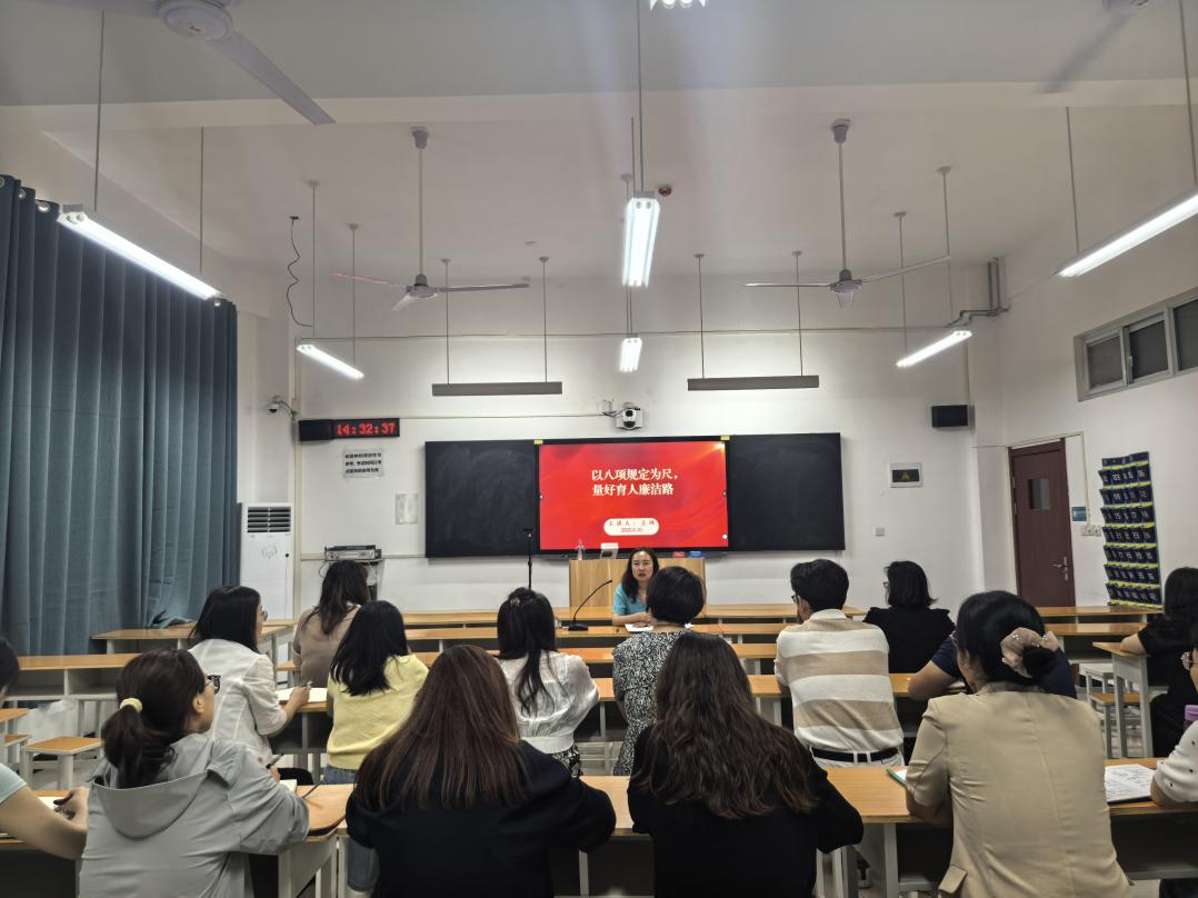 为深入贯彻中央八项规定精神,进一步强化必赢76net线路官网教工党员的廉洁自律意识,推动形成风清气正的育人环境,6月10日,必赢76net线路官网教工党支部书记王珂在开封北院E103为全体教师讲授“以中央八项规定为尺,量好育人廉洁路”为主题的党课。