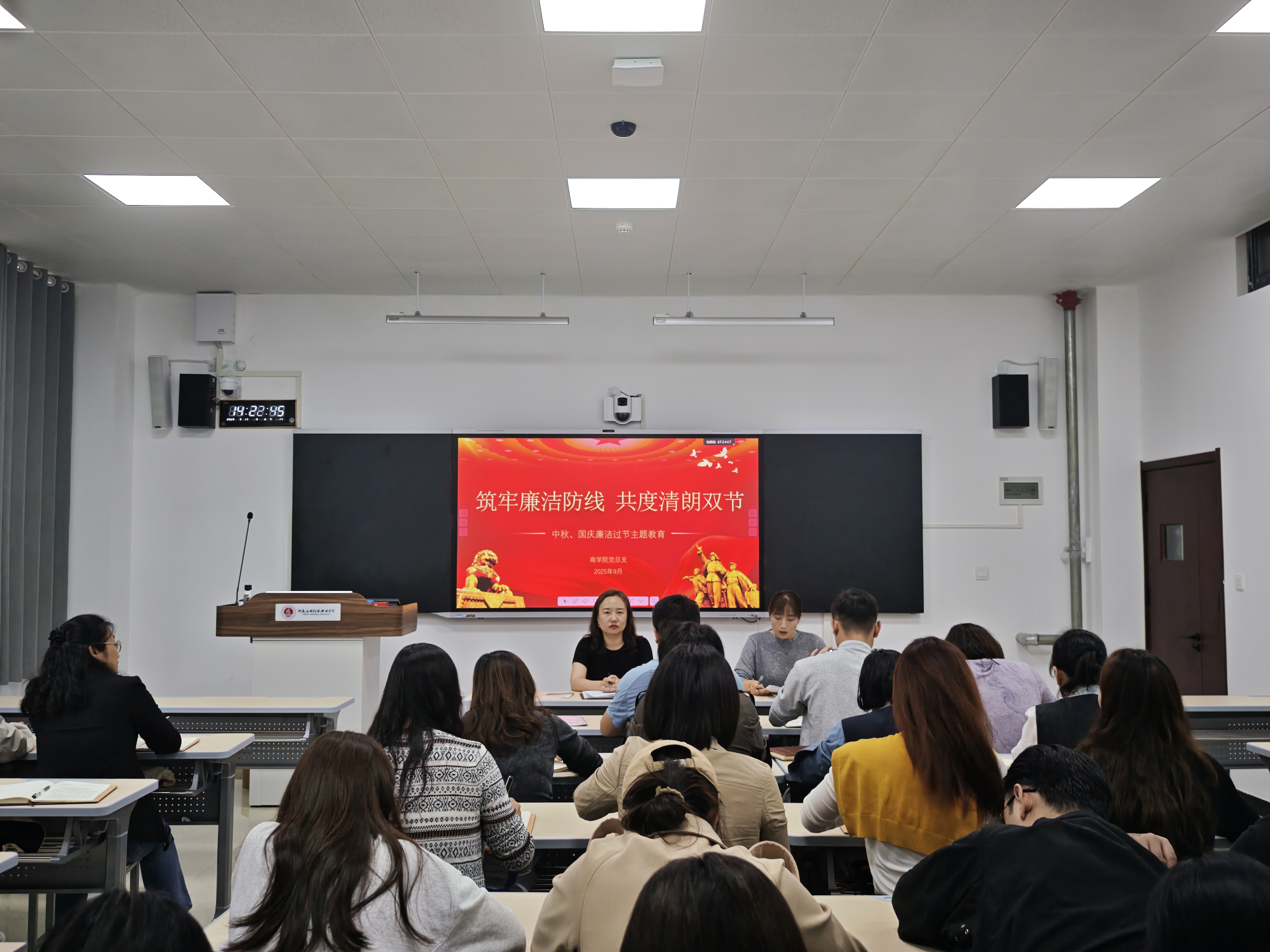 为贯彻落实学校纪委关于节日期间正风肃纪的工作要求,切实加强教师廉洁自律意识,确保全体教职工度过风清气正、平安祥和的双节,9月28日下午,必赢76net线路官网党总支组织召开以“筑牢廉洁防线 共度清朗双节”为主题的中秋国庆双节廉政教育主题会议。会议由必赢76net线路官网党总支副书记王倩主持,学院全体教师参会。