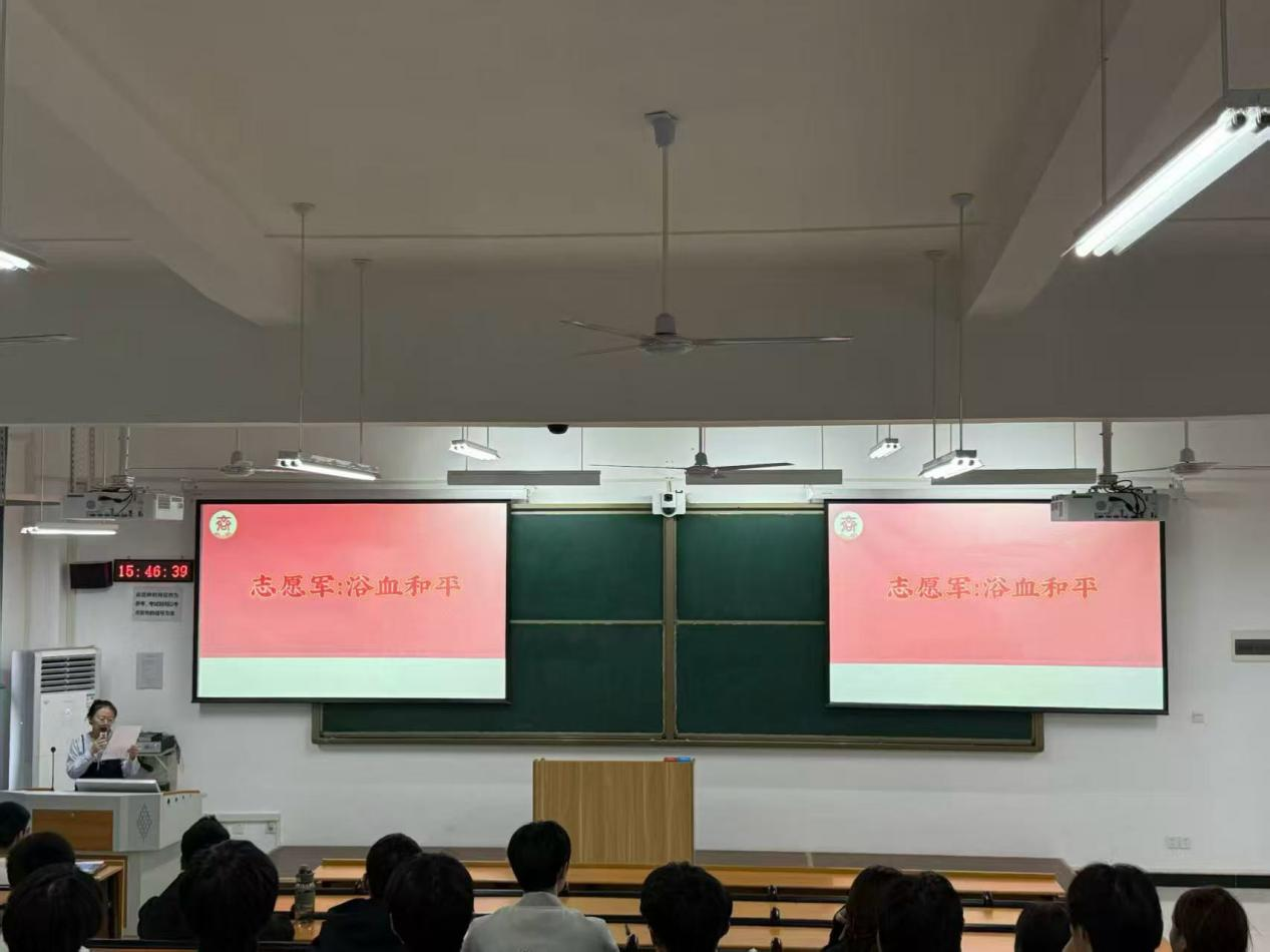 影片放映前,必赢76net线路官网学工党支部党员教师吴淼结合历史背景作专题讲解。她从抗美援朝战争切入,解读“747天停战谈判”的战略意义,点明上甘岭战役对国家尊严的捍卫,并强调志愿军“钢少气多”的信念是真实历史的缩影,为观影筑牢认知基础。