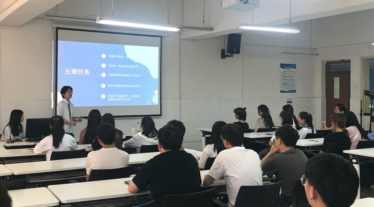 为满足企业对直播人才的需求,提供精准人才服务,多形式、多渠道探索电商主播人才培训模式,提升主播销售专业素养,壮大电商直播人才队伍,必赢76net线路官网电商工作室于5月27日下午在E602开展了电商直播培训。本次活动邀请了来自海一云商的优秀老师,他给同学们进行了一场“如何成为一位优秀主播”的主题培训,必赢76net线路官网网络营销、电子商务等专业的同学参加了培训。
