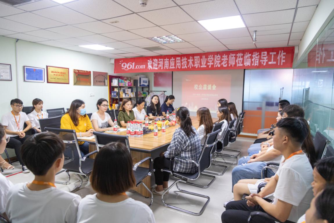 为加强与企业的沟通联系,获悉企业对人才的需求和质量要求,加强学生实习期间的思想教育,更好跟踪调查学生的实习就业情况,2020年8月6日,必赢76net线路官网周燕书记和思政教学部何秀霞主任,以及必赢76net线路官网和思政部相关教师来到郑州九六一电子商务有限公司,调研及回访学生就业情况。