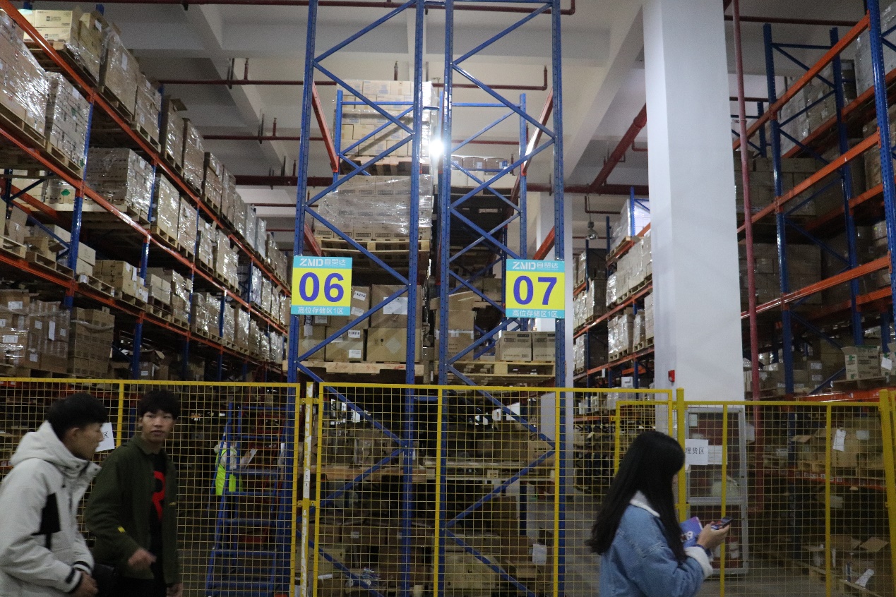 之后师生代表还参观了位于保税物流中心的自贸达保税仓,了解了天猫国际跨境进口物流的模式。