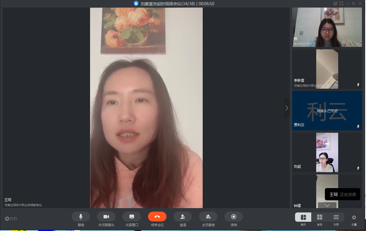 首先,教学办王珂老师用详实的数据通报了前10周网课运行的具体情况。针对网络教学过程中存在的问题,希望各位老师能将网络课程设计的更加合理,适当融入课程思政因素,理论讲解和实例枚举要融合,PPT内容要丰富生动,时刻关注学生到课率,如有异常及时与辅导员联系,对有难度的课程讲解要清晰分明。