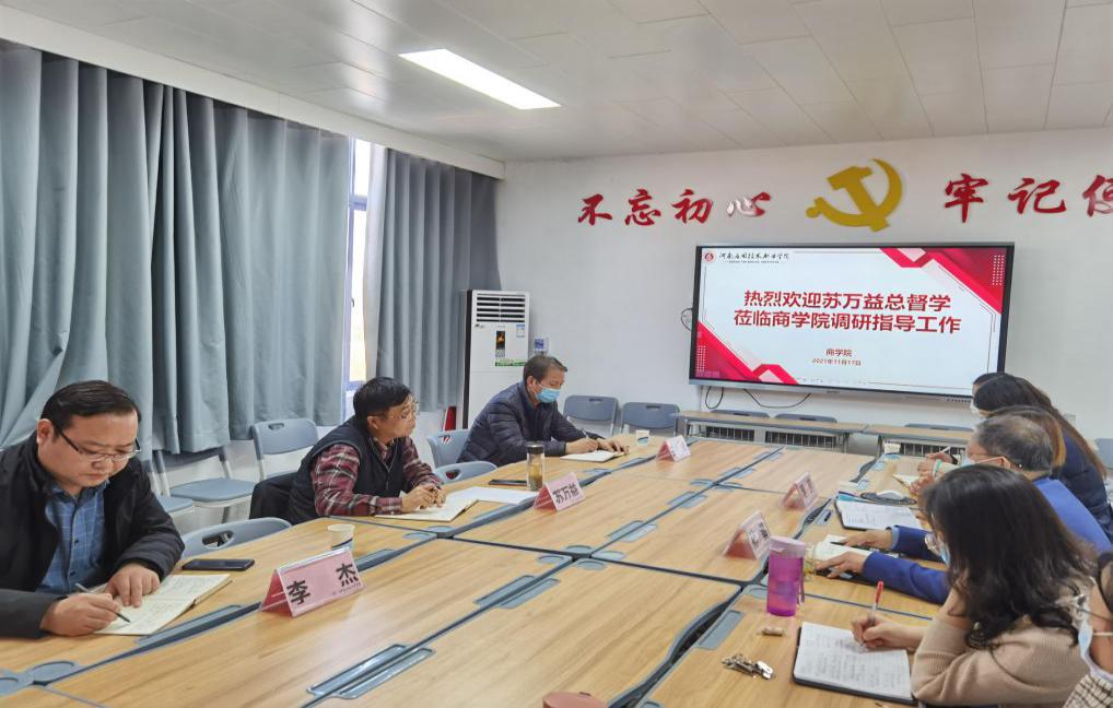 11月17日下午,学校总督学苏万益、教务处副处长王勇、发展与质量管理处副处长李杰莅临必赢76net线路官网调研指导工作。调研会议办公楼504活动室进行。院长孙勇、党总支书记周燕及部分骨干教师参加了调研座谈会。