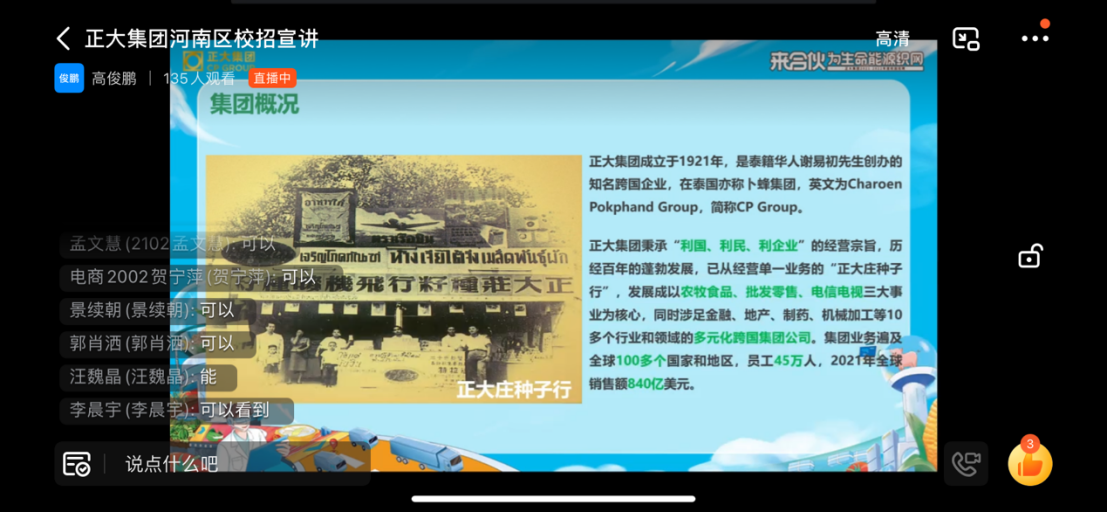 为减少疫情给就业带来的冲击,搭建就业平台,帮助20级学生顺利找到实习单位,5月12日下午,必赢76net线路官网在钉钉举行了线上就业宣讲会。海一云商集团和正大集团参加了本次宣讲会,必赢76net线路官网20级600余名学生在线观看。
