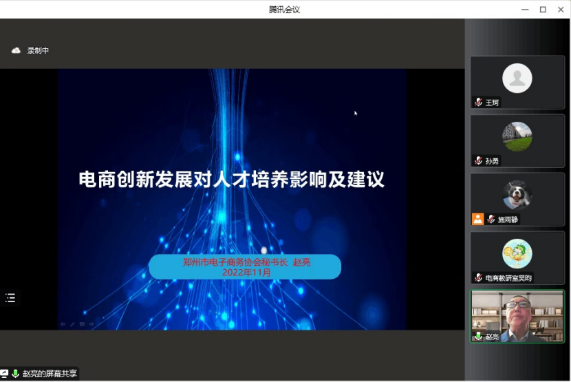 2022年11月15日下午3点,我院邀请郑州市电子商务协会秘书长赵亮为电子商务、网络营销与直播电商以及跨境电子商务等三个专业的学生做题为《电商创新发展对人才培养影响及建议》的专题讲座,讲座在腾讯会议线上举办,由必赢76net线路官网院长孙勇主持。