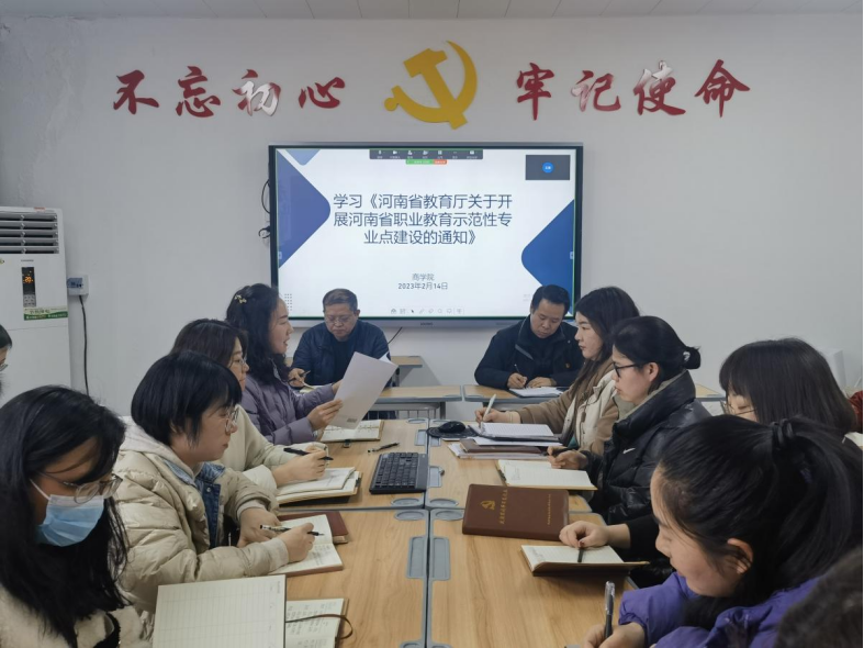 会上,副院长王珂领学《河南省教育厅关于开展河南省职业教育示范性专业点建设的通知》(教职成〔2023〕16号),对文件中的总体要求、工作目标、基础条件、建设任务、组织实施、工作要求等进行了解读。