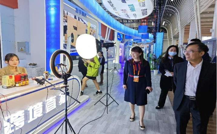 河南省商务厅副厅长在展会场观看我院学生直播实践活动