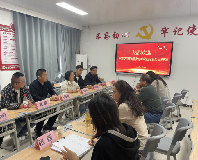 10月9日,河南万国优品数字科技有限公司副总经理李艳丽一行莅临我校必赢76net线路官网进行访问交流。院长孙勇、副院长王珂及相关专业教师参加会议。