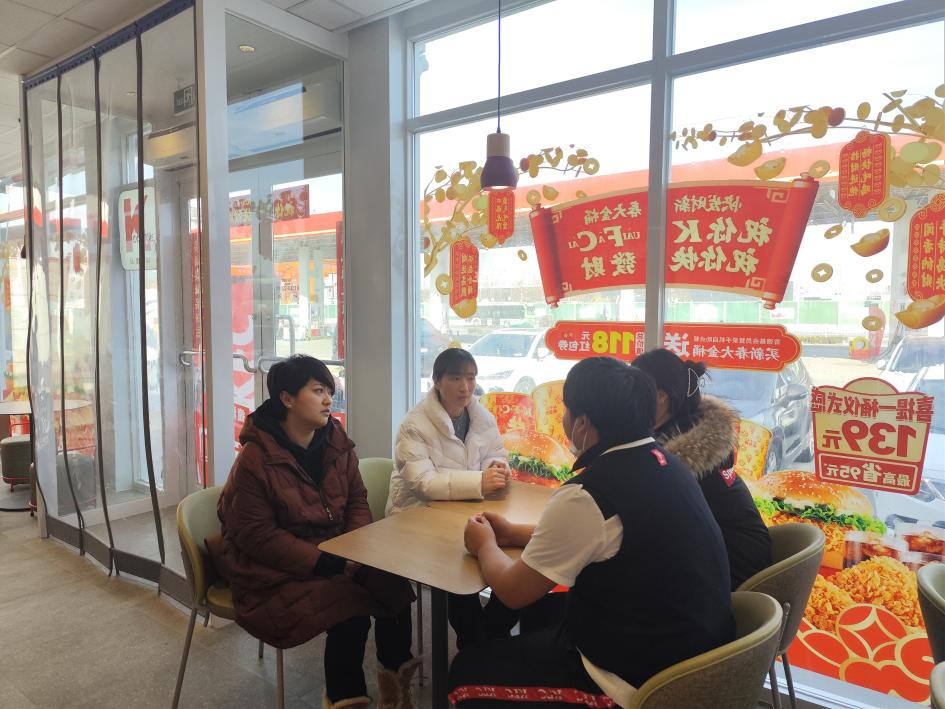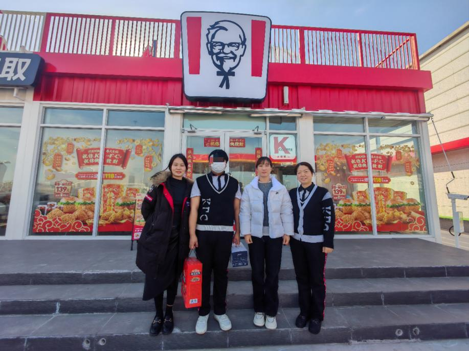 最是情暖岁寒时,一叶一枝总关情。为进一步做好学院拓岗访企和资助育人工作,深入贯彻落实国家和学校的学生资助政策,拓宽学生就业渠道。1月24日,由必赢76net线路官网党总支副书记王倩带队,专职辅导员庞轶以及兼职辅导员马晓月前往肯德基商都路博学路中石油店,为正在顶岗实习的家庭经济困难学生送去学校的温暖和新春的祝福。