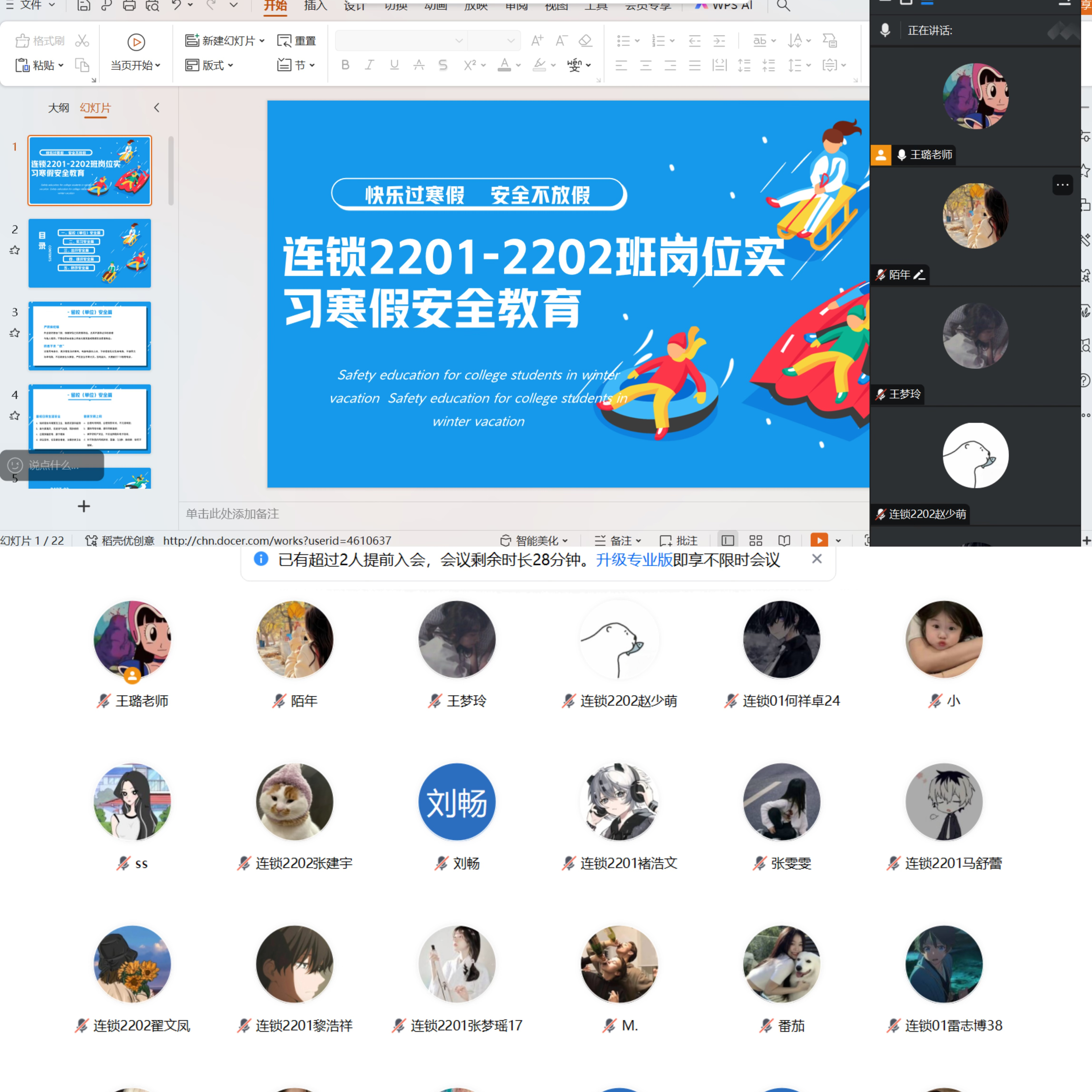 为进一步强化2022 级岗位实习学生的安全意识,保障学生在实习期间的人身和财产安全,近日,必赢76net线路官网组织开展了2022 级岗位实习学生安全教育会议。本次会议由各班级实习指导教师以线上会议形式分别给负责班级召开。