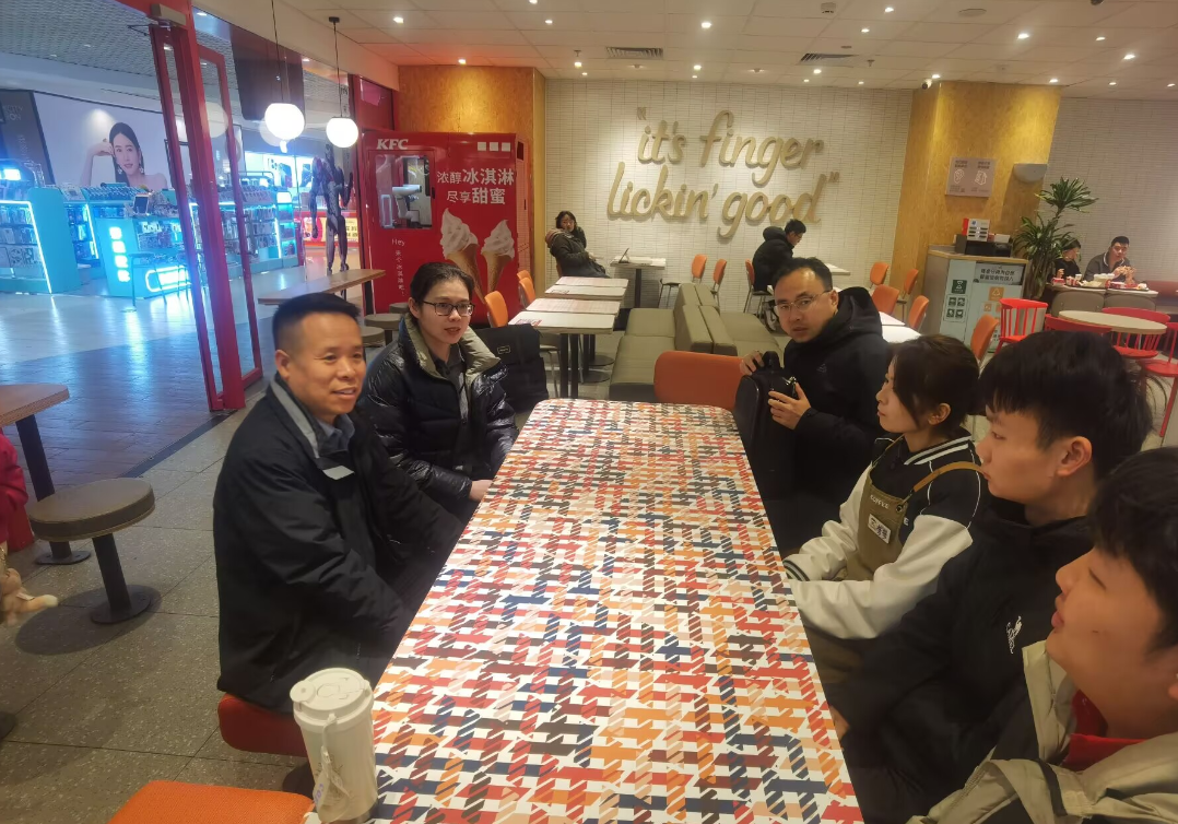 随后,苏云峰仔细询问了学生们的工作内容、日常生活以及收获感悟。学生们反馈,通过在肯德基实习,不仅将课堂所学的运营管理等理论知识应用到实际工作中,还锻炼了团队协作、应急处理等综合能力,并对未来职业发展有了更清晰且务实的规划。苏云峰对学生们在实习期间展现出的专业素养与积极态度给予充分赞扬,鼓励他们继续保持学习热情,严格遵循企业规范,珍惜难得的实习机会,全方位提升自我,为未来职业生涯筑牢根基。