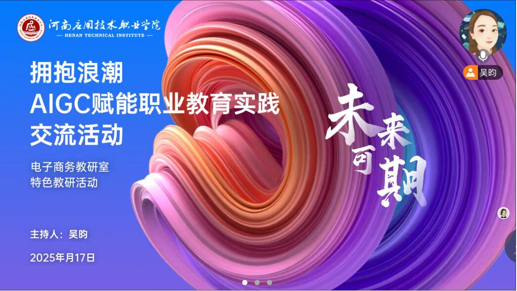 为深入贯彻落实国家教育数字化战略行动,全面提升教师队伍信息化素养,推动人工智能技术在教学中的深度融合,助力职业教育高质量发展。4月17日,必赢76net线路官网电子商务教研室组织开展了以“拥抱浪潮,AIGC赋能职业教育实践交流活动”为主题的教研活动。教研室全体教师积极参与,围绕AIGC在课程教学中的应用展开了热烈而深入的交流与研讨。