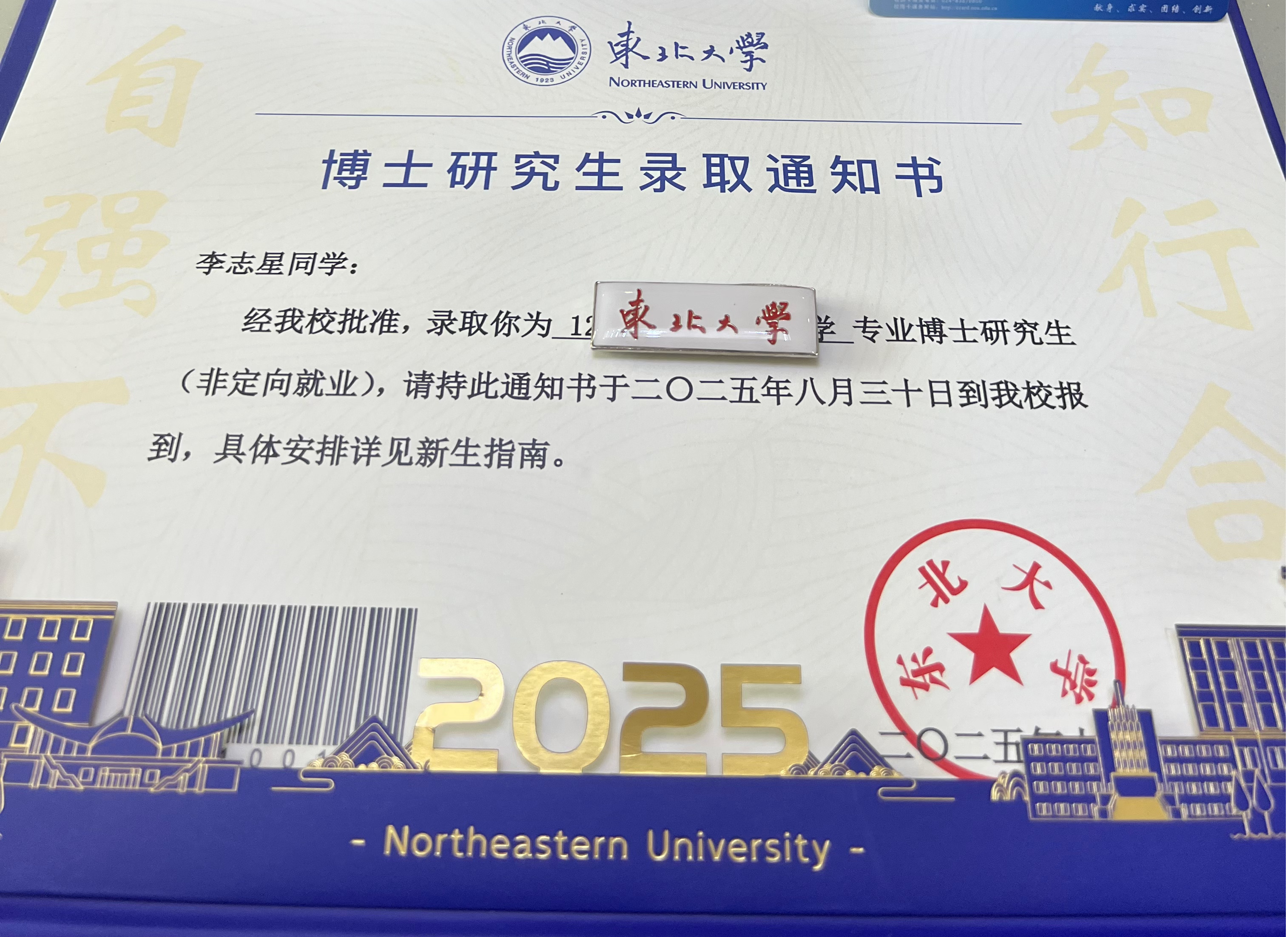 2025年7月17日,必赢76net线路官网物流1702班毕业生李志星收到东北大学博士研究生录取通知书,以十二年持续奋进的求学经历,在高等教育的进阶之路上留下了坚实足迹。