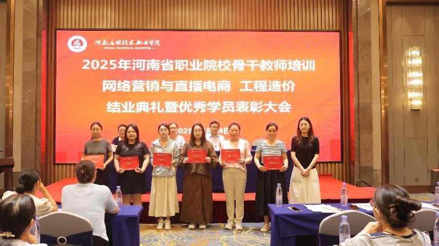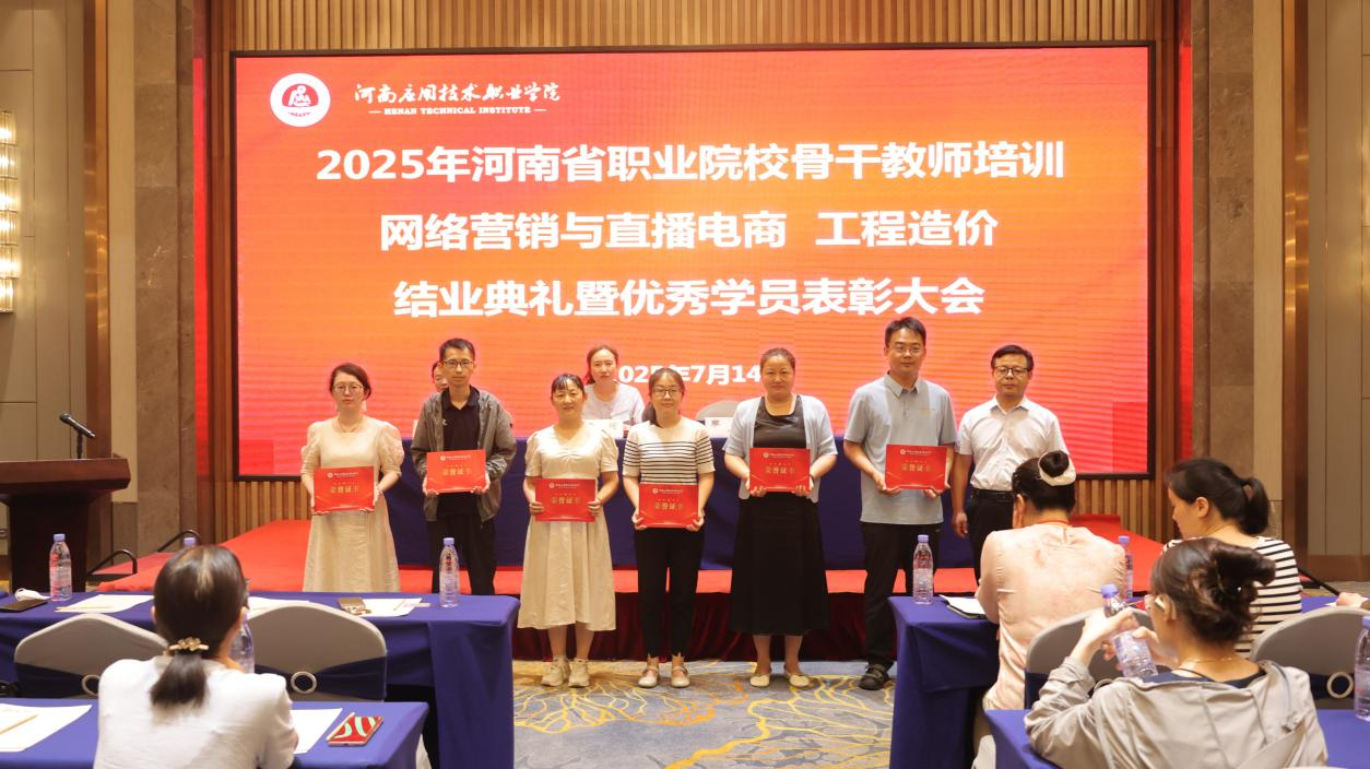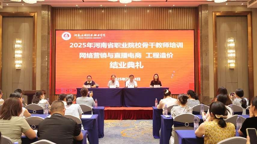 2025 年 7 月 14 日下午,2025 年河南省职业院校骨干教师(网络营销与直播电商、工程造价)省级培训结业典礼在郑州隆重举行。建筑工程学院院长李勇、必赢76net线路官网副院长王珂出席仪式,仪式由王珂主持。