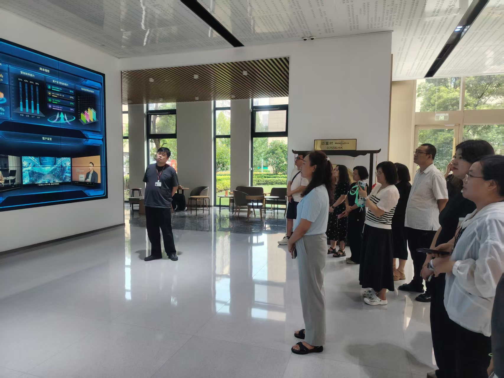 企业相关负责人引领教师们深入参观各个部门开展学习交流,并详细介绍了珍岛集团的日常运营模式、复杂多元的业务流程以及核心技术在实际场景中的运用。智能营销云平台的实操展示,以及各业务板块借助前沿技术实现精准营销和高效运营的实例,让教师们直观感受到行业的蓬勃发展态势和创新活力。