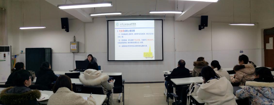 2019年12月25日,为了保证期末考试的顺利进行,我院在E602召开2019-2020学年第一学期期末考试考务培训会。必赢76net线路官网院长孙勇、副书记周燕、全体专兼职教师及体育部教师参加了此次会议。