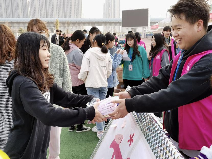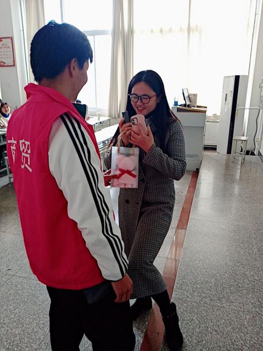 3月8日当天,可爱的小红马甲队伍带着暖心的小礼物出现在各个教室和办公室,为我们的睿智的“女神”们送上自己的节日祝福。礼物虽轻但是女神们脸上的笑容就是节日里最美好的馈赠。