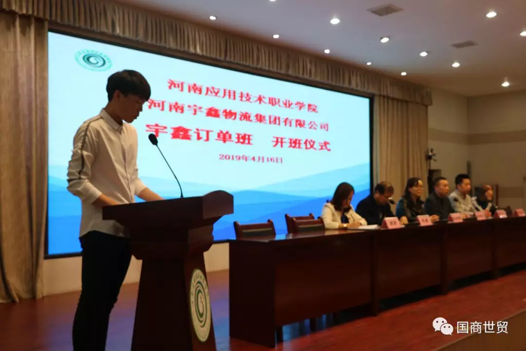 2019年4月16日,我校必赢76net线路官网与河南宇鑫物流有限公司举行了校企合作“宇鑫订单班”开班仪式。开班仪式在我校实训中心二楼会议室进行,学校党委委员陈君丽院长,校就业办李向民主任、必赢76net线路官网党总支周燕书记,宇鑫物流集团人力资源总监闫新法同志、人力资源经理李丁杰同志出席。开班仪式必赢76net线路官网孙勇院长主持,物流专业全体学生及必赢76net线路官网老师参加。
