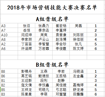 进入决赛的小组名单如下: