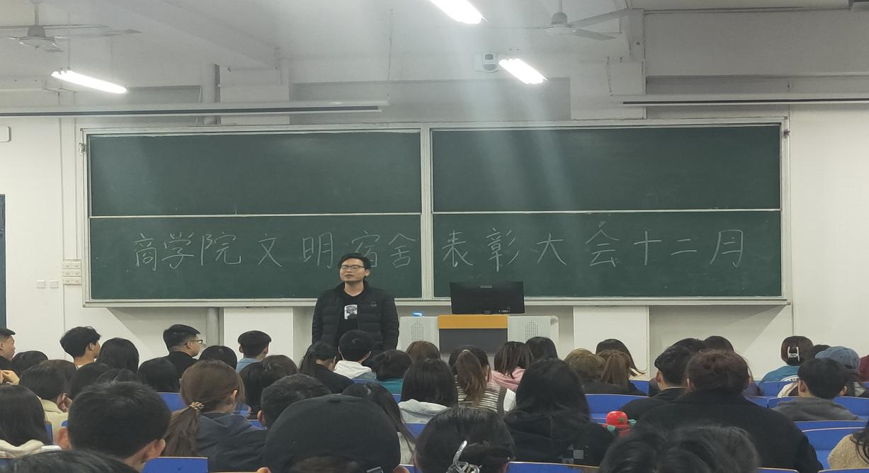 会上,乔老师对2020年下半年的宿舍管理工作进行了总结,对去年12月份评选出15个文明宿舍进行了表彰。他要求各班级要向优秀宿舍看齐,人人争创文明宿舍,为自己的大学集体生活留下美好的回忆。