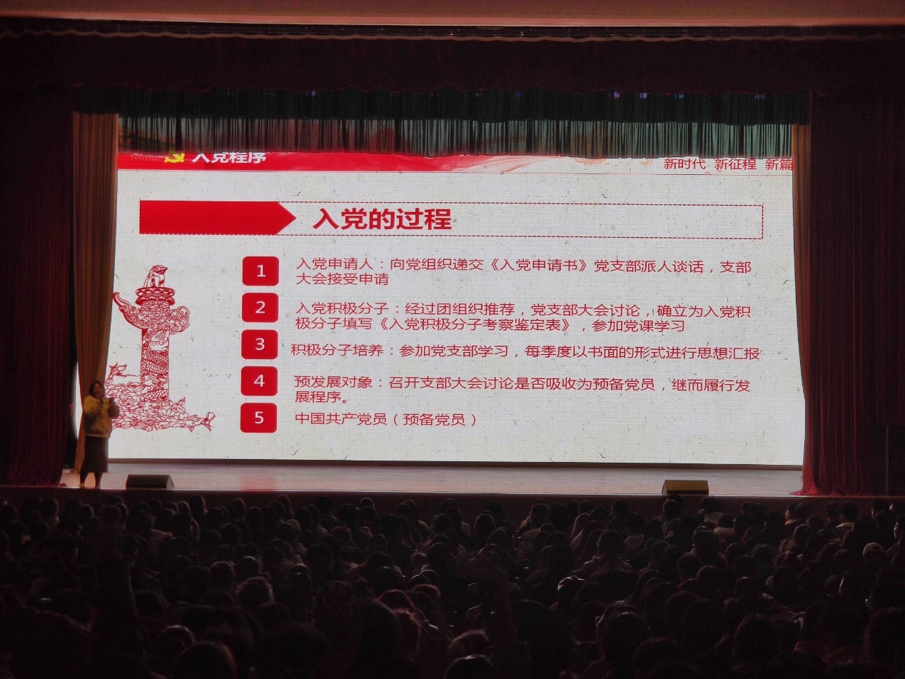 其次李力老师从当代大学生必须确立马克思主义的科学信仰、为什么要加入中国共产党、发展党员的程序和标准,以及怎样才能加入中国共产党等四个方面为大家讲解了党的基本知识。同时要求入党的青年学生确定人生追求、坚定信仰,不管是入党之前还是之后都能够不断加强提升自我,发挥先进作用,为党和国家做出更大贡献。