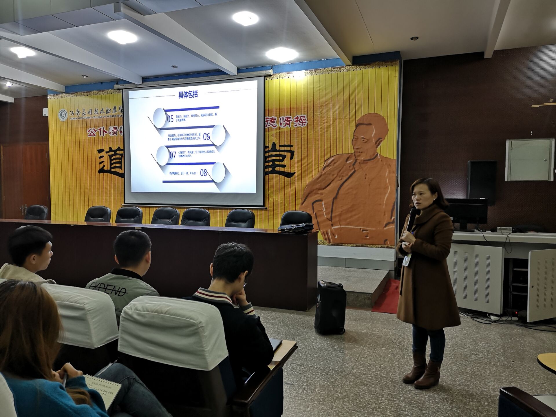为加强学生干部与同学之间的交流沟通,也将使得学生工作进一步深入到学生当中,更有利的促进了我院学生工作更好发展,同时帮助大家在日常工作中成为更好的自己。商贸学院于2018年11月13日为学生干部们开展了为期两周的干部培训课程。授课老师分别是:商贸学院书记周燕老师、商贸学院团总支书记李力老师、商贸学院老师吴昀老师、商贸学院专职辅导员董会老师、商贸学院校企合作辅导员苗晓迪老师。几位老师分别从学生干部的基本素养、日常礼仪、办公软件使用以及基本党团知识几方面进行系统全面的培新。