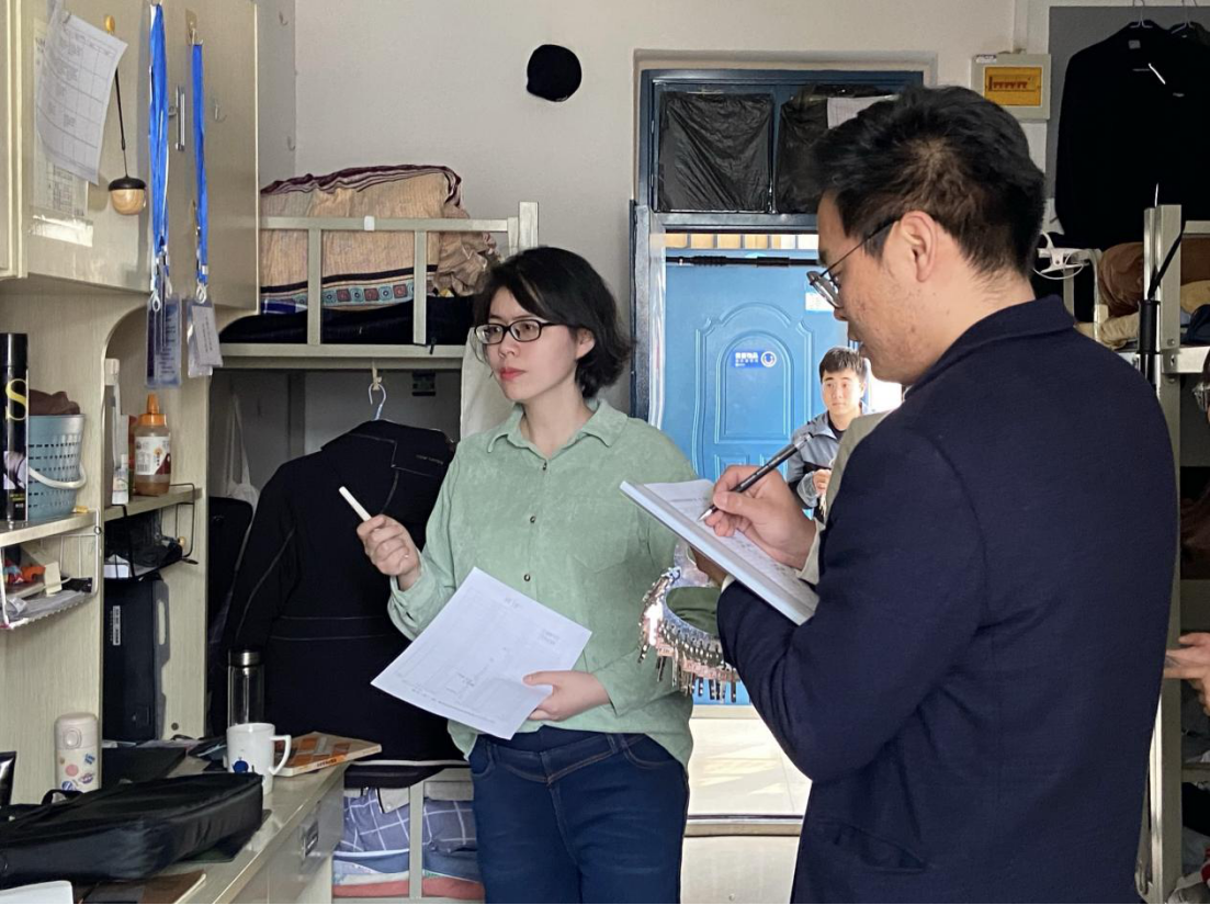 检查走访中,辅导员们查看了同学们宿舍生活环境、卫生状况,检查了宿舍用电安全性,叮嘱同学们按照疫情防控要求做好个人防护,主动配合每天晨午检。