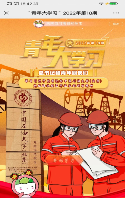 今天,“青年大学习”网上主题团课推出了以“学习习近平总书记给中国石油大学克拉玛依校区毕业生的回信精神”为主题的相关讲解。带领广大团员青年一起学习相关精神。