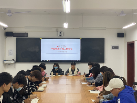 2022年10月20日下午,必赢76net线路官网在开封校区北校区B203室召开学生干部管理工作会议,本次会议由副书记王倩主持,团总支书记李力,辅导员张天娇、庞轶老师,学生会主席团干部、各部门负责人参加本次会议。