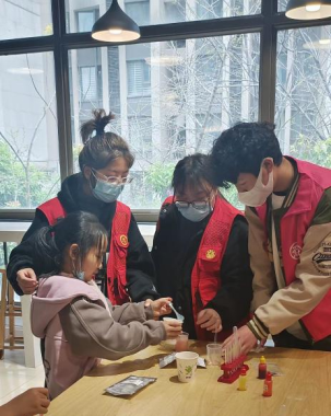 志愿者发挥志愿精神,带领社区小朋友开展科学小实验课堂,大家耐心和小朋友们一起做实验,和小朋友一起玩耍,通过一些简单有趣,适合操作的科学小实验,提高了小朋们的动手动脑能力、思维能力、判断能力、创新能力。志愿者们也通过活动增强了自身动手能力和小朋友的交流互动能力。